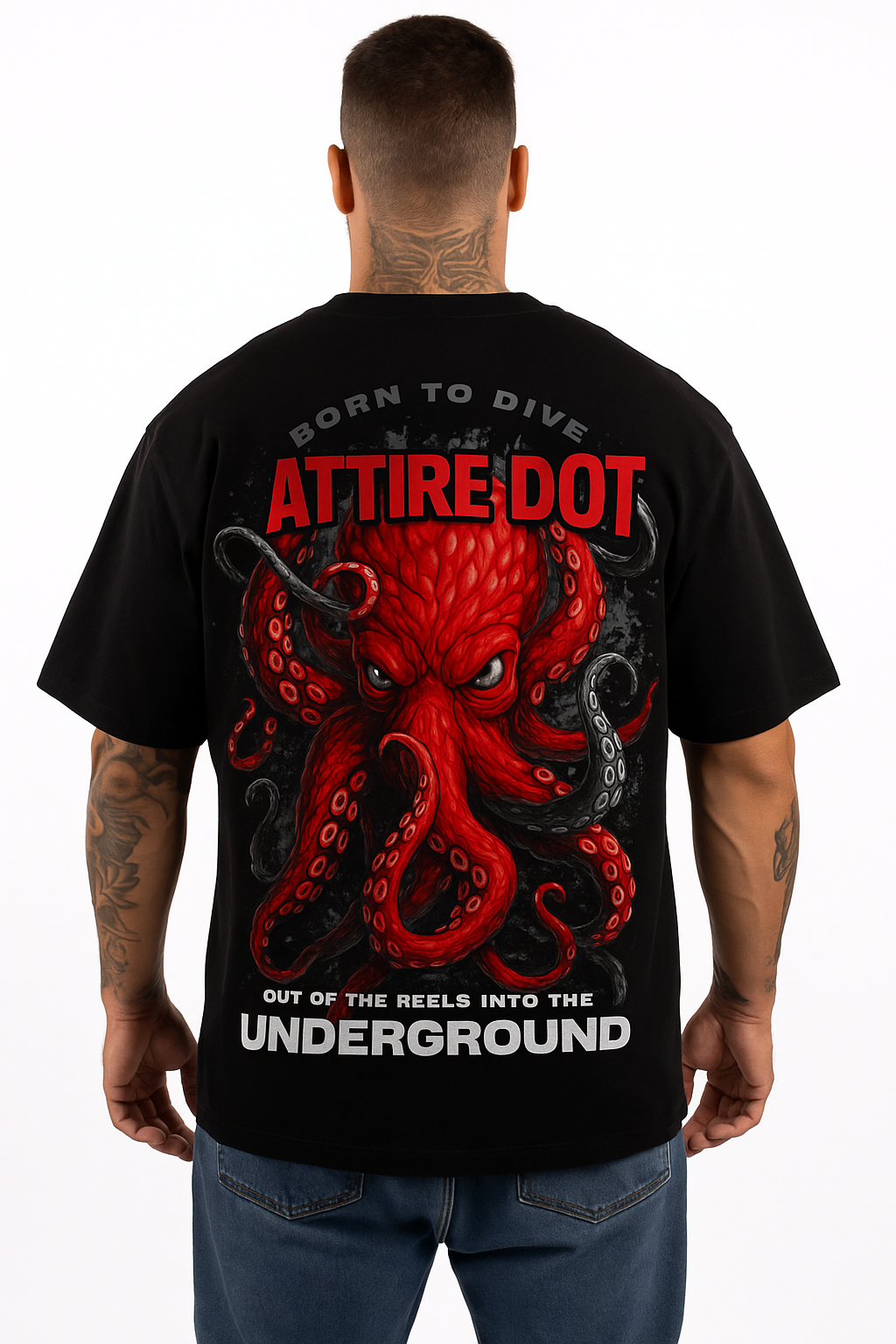 Attire Dot Born to Dive Oversized T-Shirt – Black | 240 GSM Cotton Streetwear