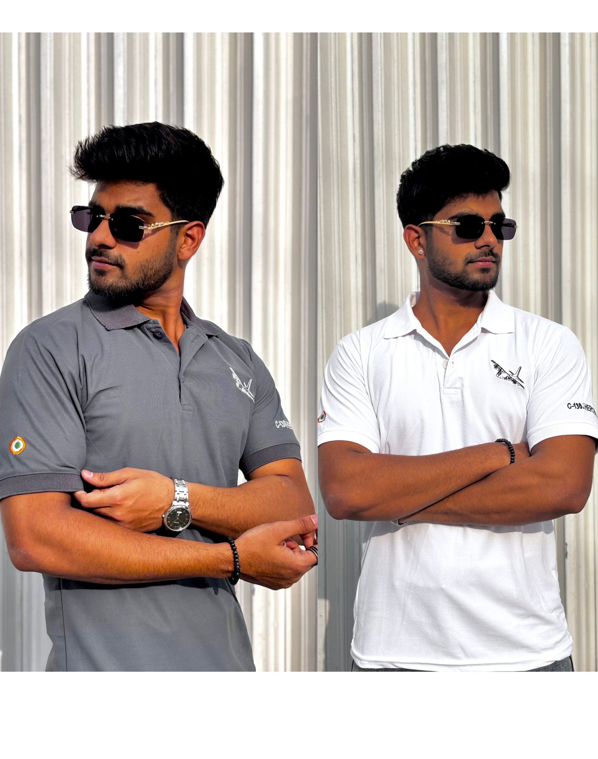 Combo of 2 C-130J Super Hercules Polo T-Shirts – White & Light Grey