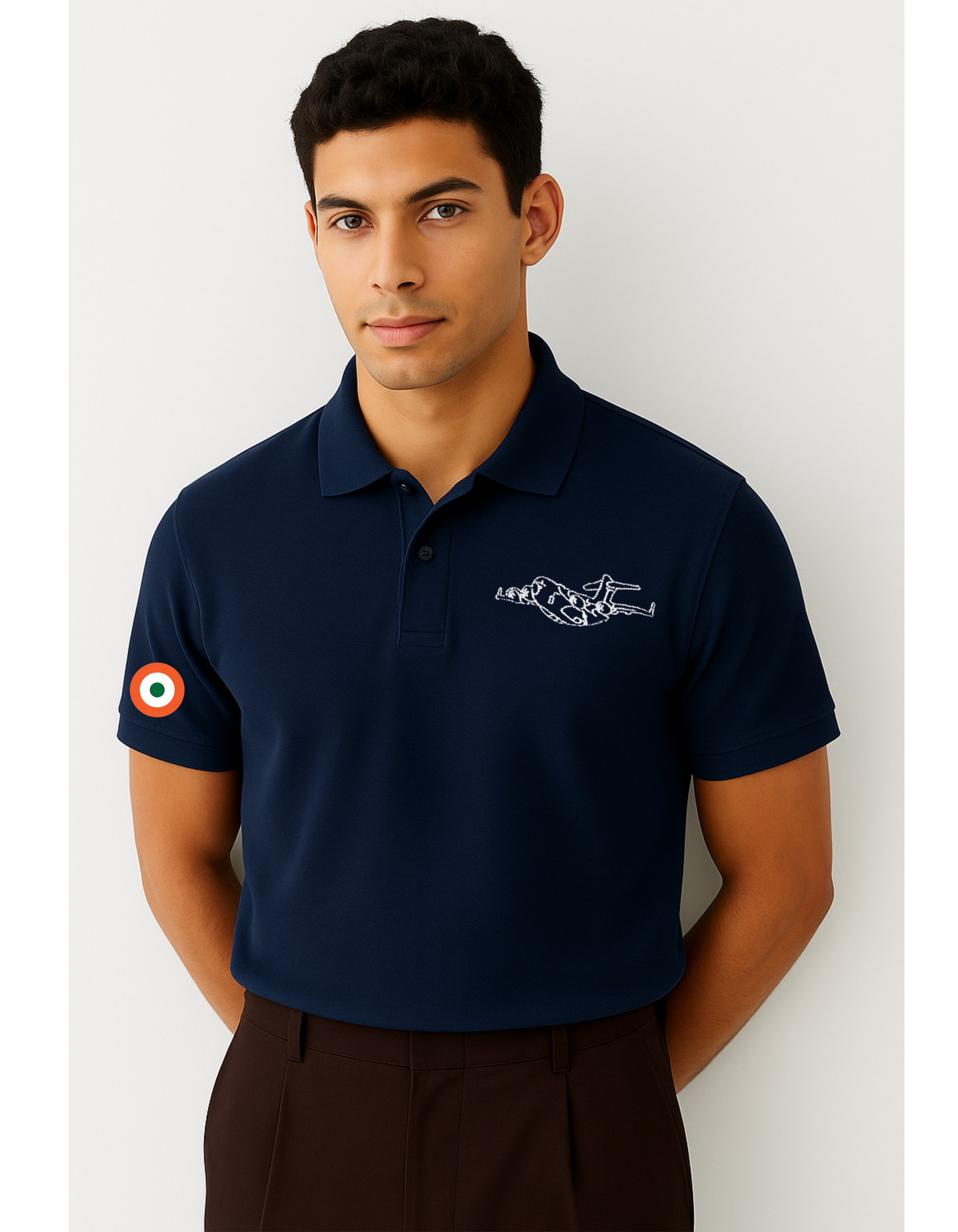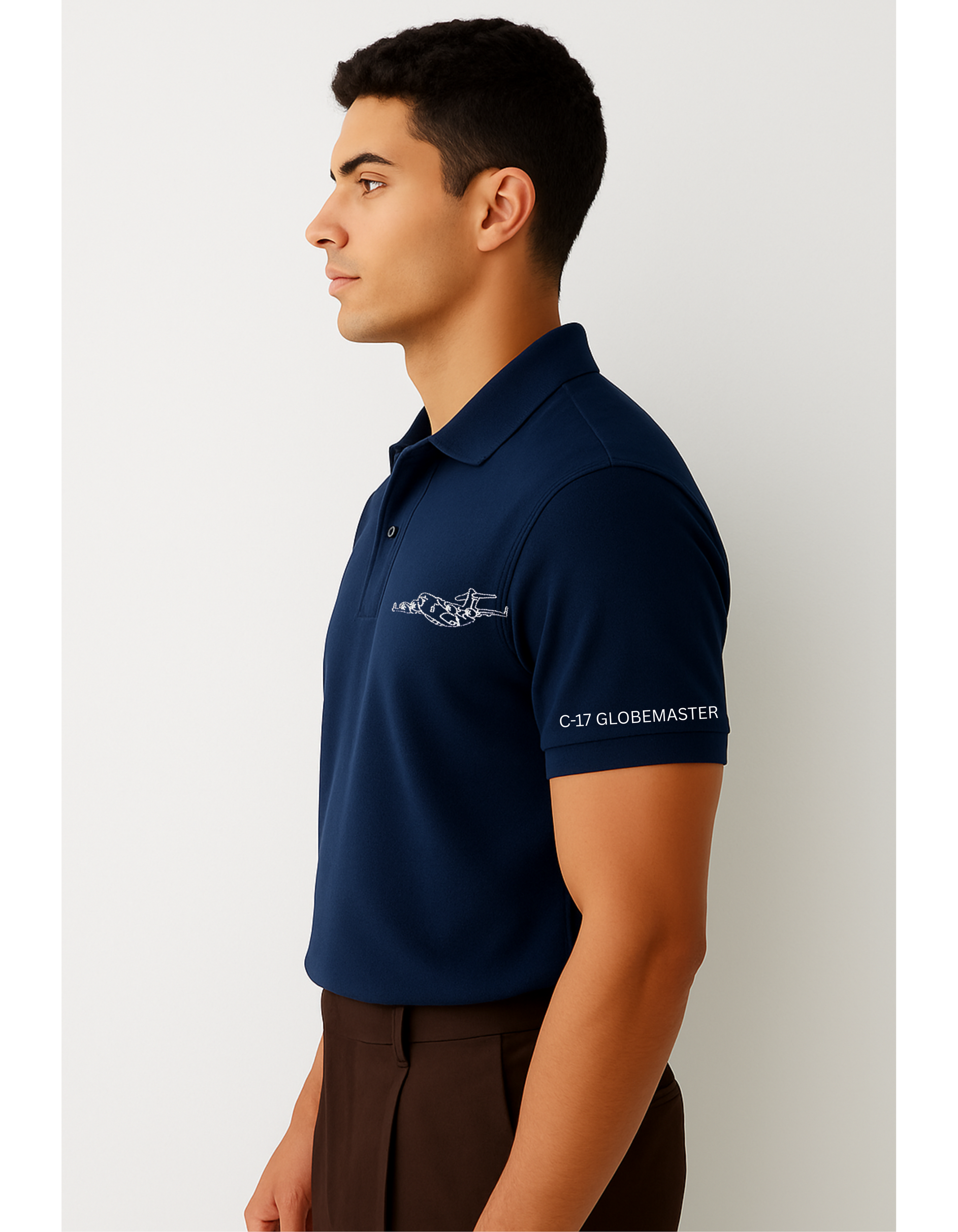 Dark Navy Blue C-17 Globemaster Polo T-Shirt – Showcases the power of India’s strategic airlift aircraft in a sharp, bold design.