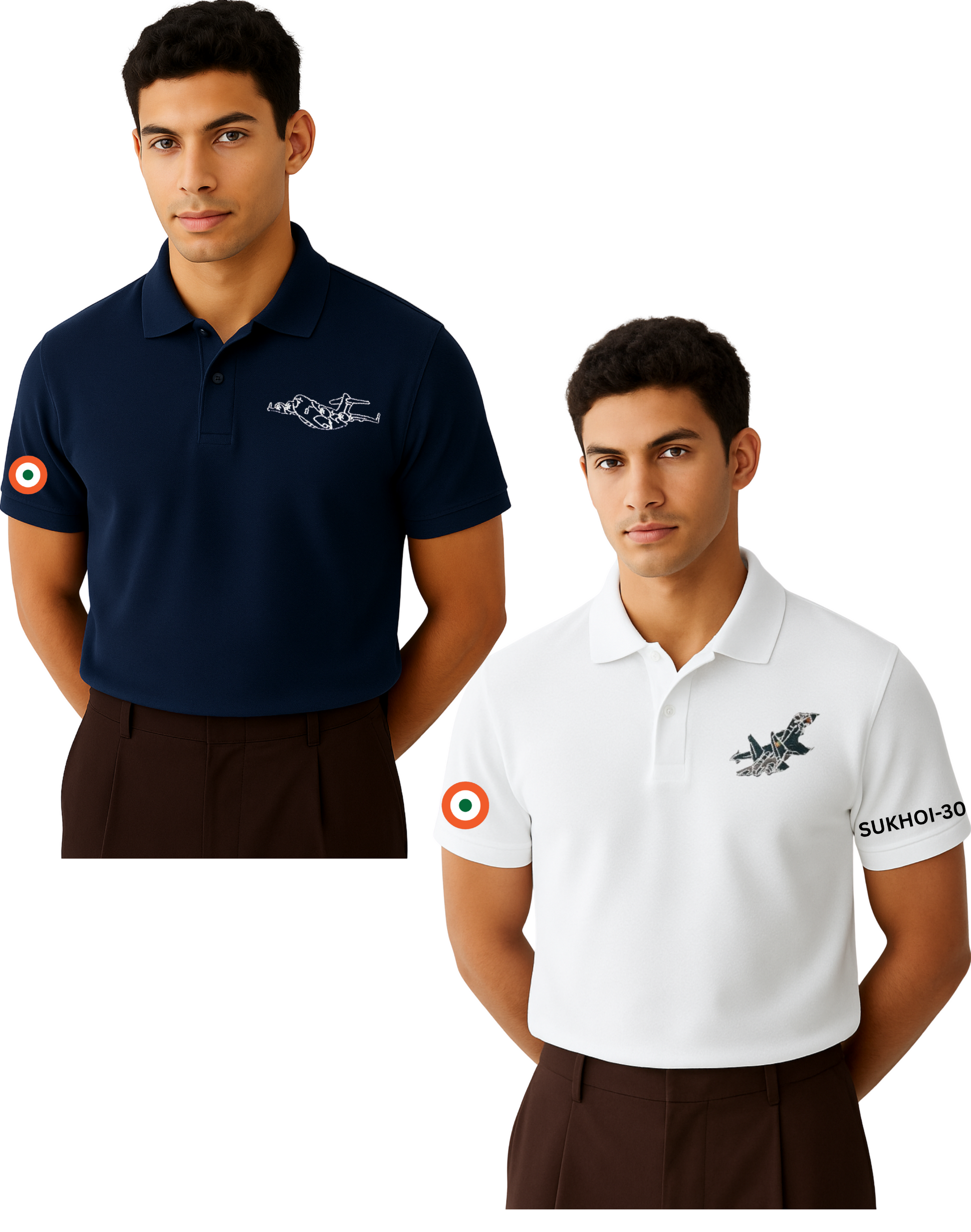 Combo of 2 Indian Air Force Polo T-Shirts – C-17 Globemaster (Navy Blue) & SU-30 MKI (White)