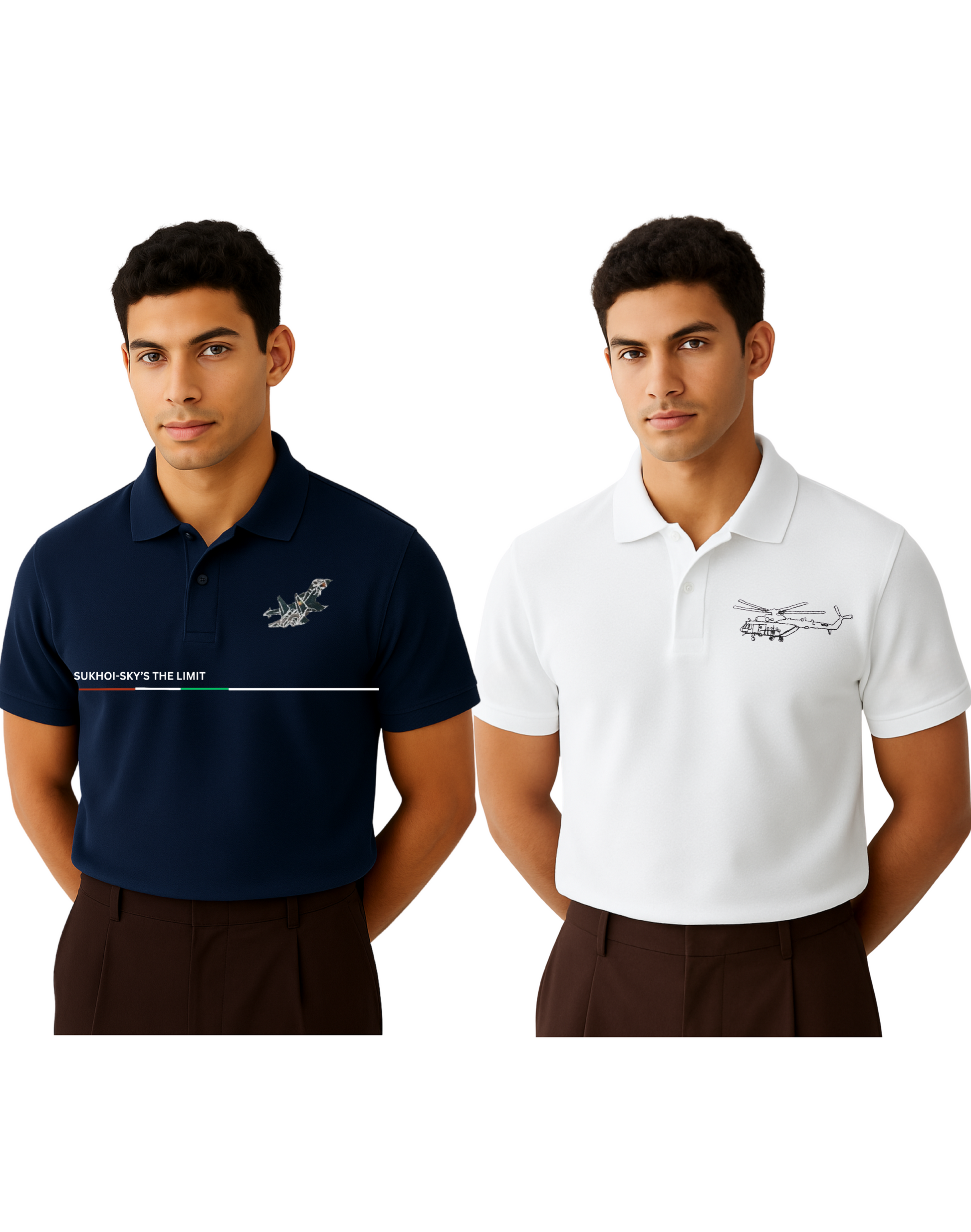Combo of 2 Indian Air Force Polo T-Shirts – MI-17 Helicopter & SU-30 Sky"s Limit