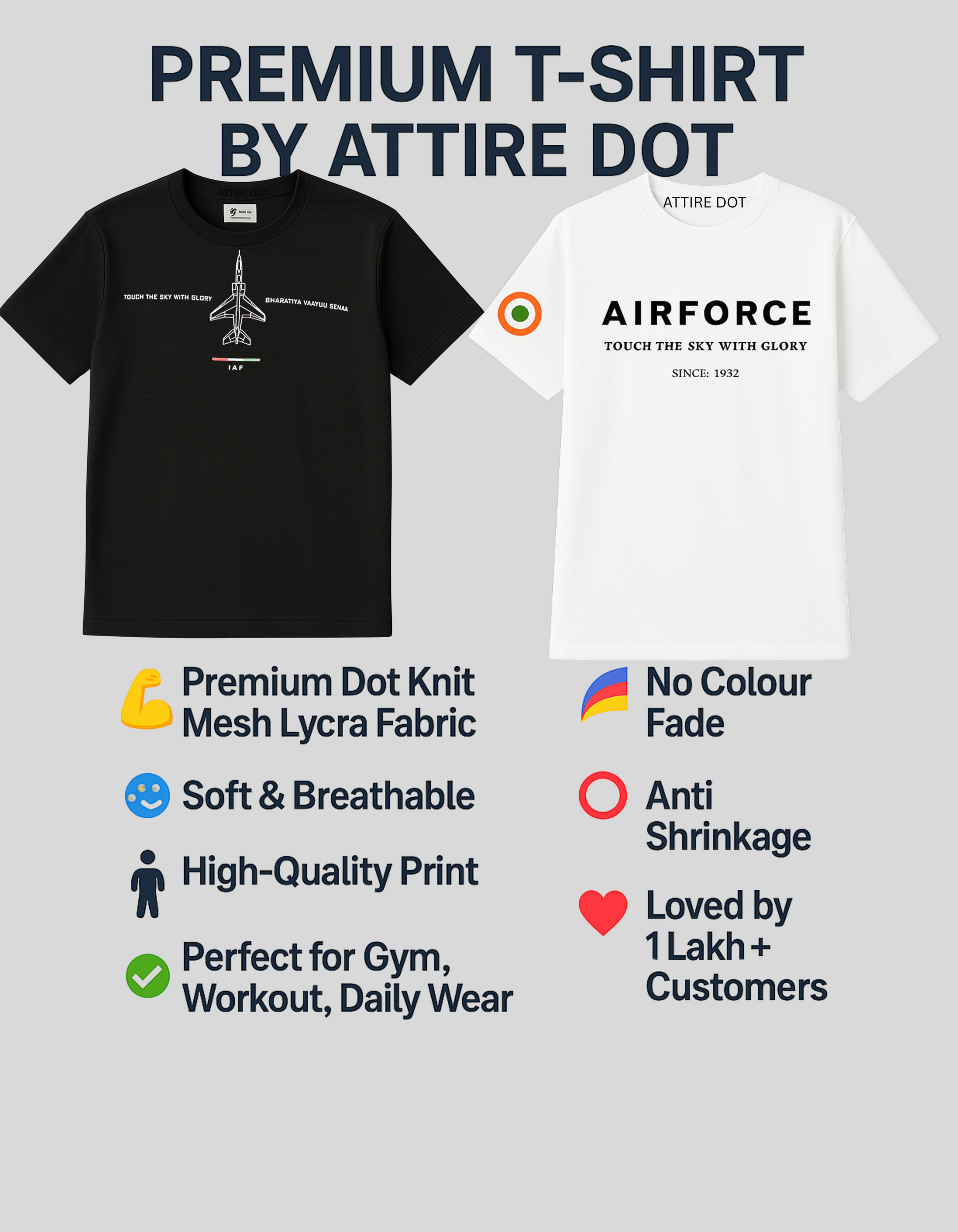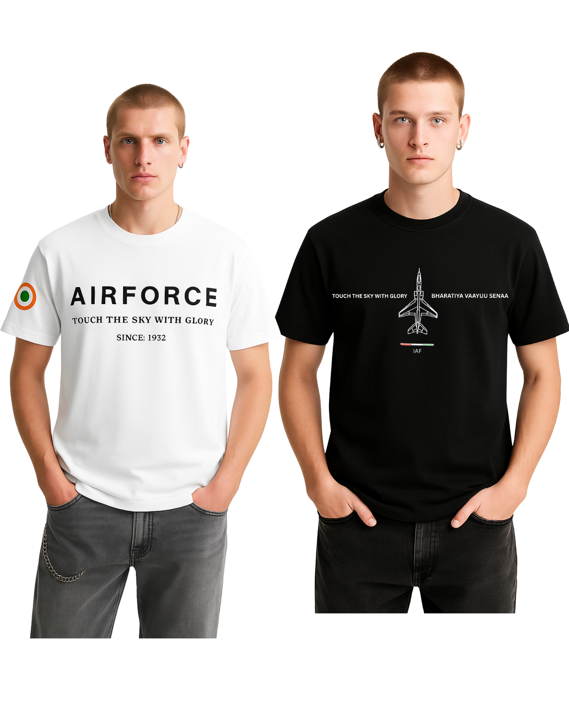 🇮🇳 Honor the skies and the warriors who guard them with this exclusive combo of 2 powerful t-shirts inspired by the Indian Air Force.