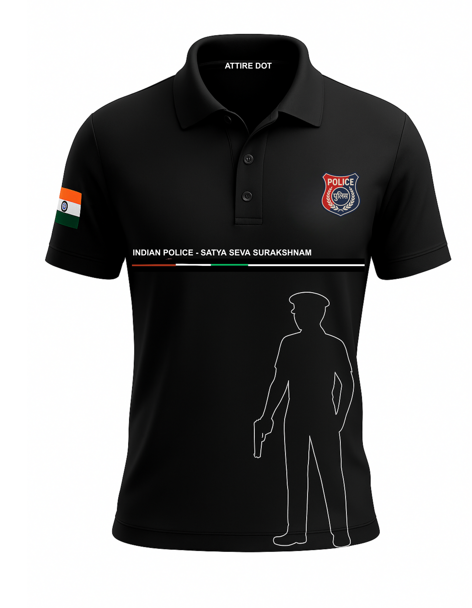 Design: Indian Police Badge, Tricolour Flag Sleeve, Bold Silhouette Print