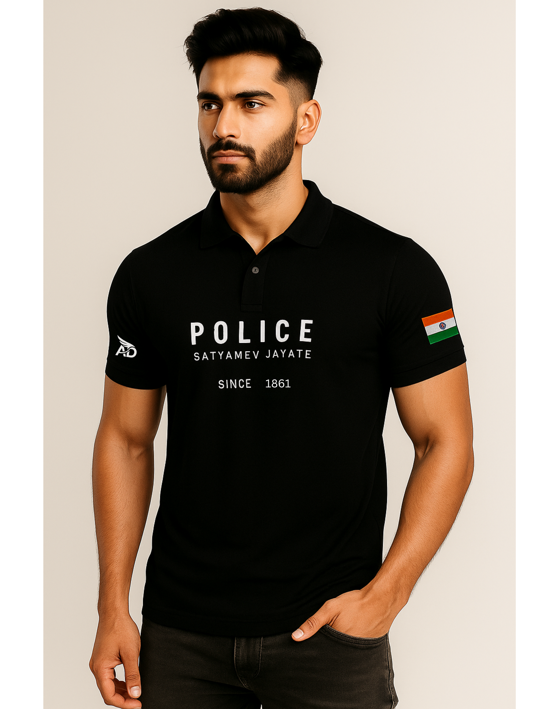 Design: Bold “POLICE” Typography, “Satyamev Jayate” & “Since 1861” Print
